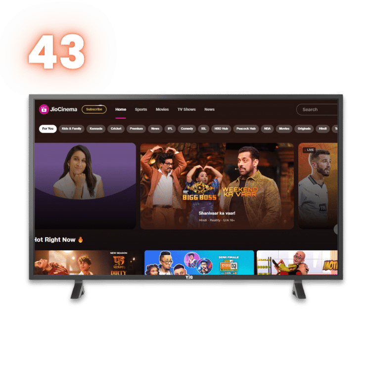 YIQ Smart TVs offer a diverse range of sizes to suit various spaces. Our lineup includes TVs ranging from 24 inches to 43 inches, ensuring that you find the perfect size for your room.
